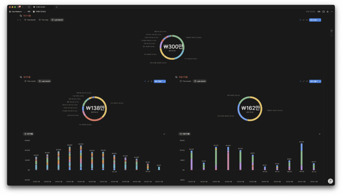 정기지출은 연내 최저치를 찍었지만, 비정기지출에서 연내 최고치를 찍음. 아무래도 추석 연휴 때 나간 명절비, 용돈 및 3박 4일로 다녀온 하코다테 여행 때문. 정기지출은 이제 안정화된 것 같은데, 비정기지출이 매달 다른 항목으로 발생하고 있어서 계획적으로 관리를 잘해야할 듯 싶다. 11월에도 위고비 구입 비용 + 방콕 여행으로 적지 않은지출을 할 예정..