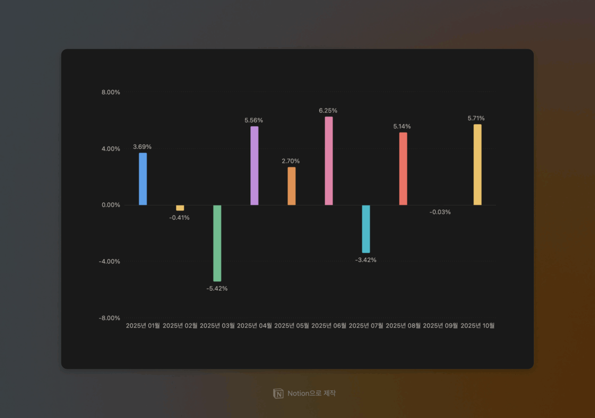 10월에는 5.71%의 수익률을 기록했다. 짝수 달에 좋고 홀수 달에 안 좋은 건 기분 탓이겠지?