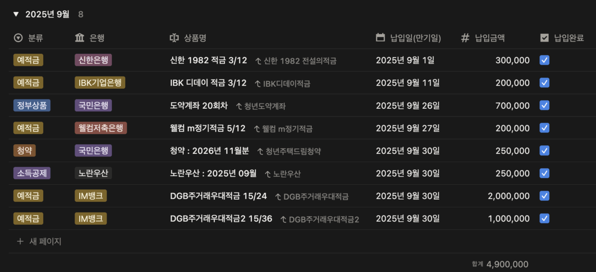 9월에는 저축에 490만원을 넣었다. 모두 금리가 꽤 좋은 상품들만 남았지만, 곧 집을 사거나 주식이 폭락하면 바로 순서대로 해지할 예정이라만기까지 꼭 유지해야할 적금들이 딱히 안 보임. 물론 두 케이스가 발생하지 않는다면 만기까지 유지는 해야겠지만.