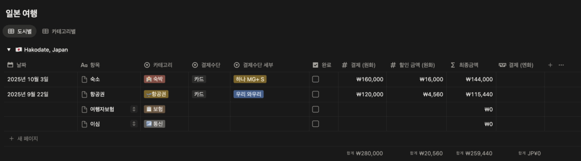 하코다테 여행 준비 중. 땡처리항공권에서 10만원에 올라와서 수수료 2만 포함해서 12만원에 얻었다. 겨울 초입 + 주말 일정이라 숙소가 비쌀 줄 알았는데 이게 뭔 일. 숙소도 싸다. 덕분에 항공권+숙소 가격은 일본 역대급이 돼버렸다. 여행자보험과 이심 정도만 사면 기본적인 준비는 완료!